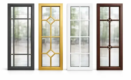 Раскладка в стеклопакете может быть выполнена в форме сетки, арки, орнамента или геометрических фигур. Декор формируется с помощью фальш-переплётов или витражной ленты и гармонично сочетается с другими элементами оформления.